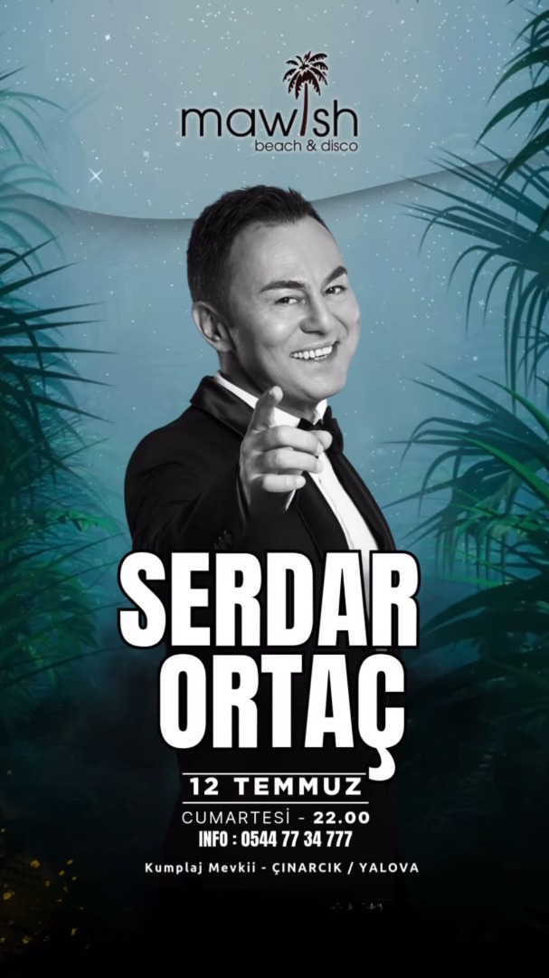 Çınarcık Kumplaj Mevkiinde Mawish Beach & Disco da Serdar Ortaç Konseri olacak.