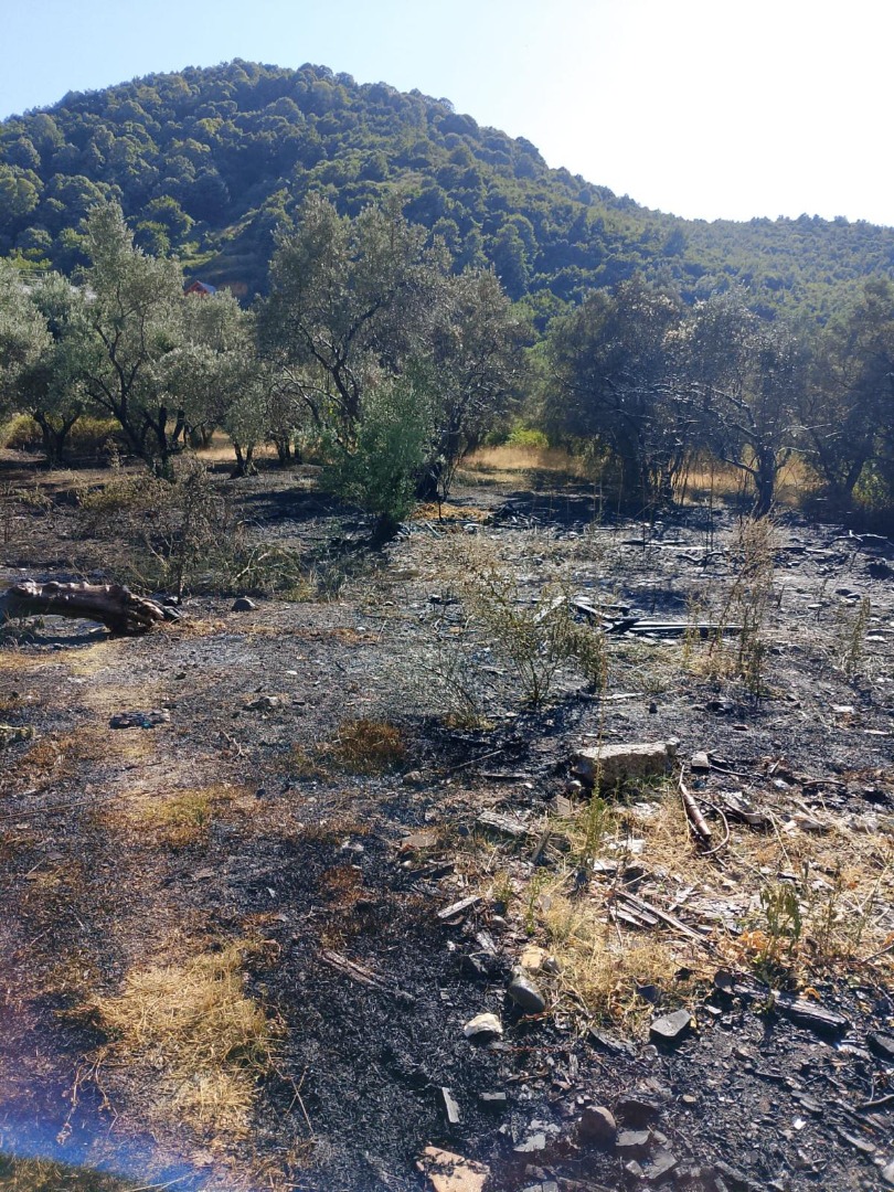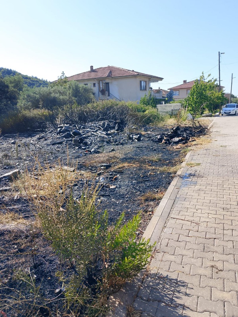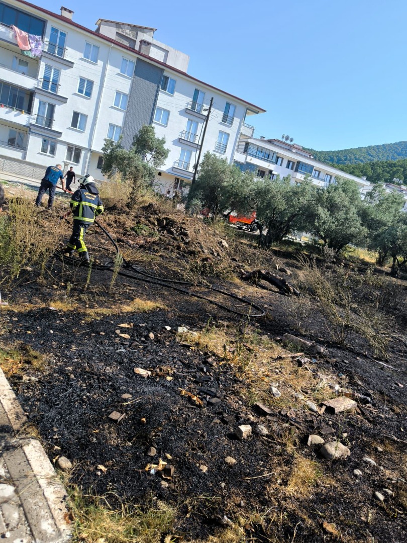 Teşvikiye beldesinde zeytinlik alanda çıkan yangın itfaiye ekipleri tarafından